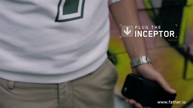 Father.IO is the app itself and the inceptor, a small device that you will hook up to your phone that allows players to engage in huge multiplayer real world battles. The combo brings a mix of real time geo-localized strategy & first person shooter battles.