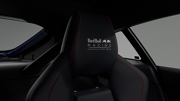 The interior comes with further sporty refinements, including ‘red bull racing’ headrest embroidery, carbon fiber trim inlays, diamond-quilting, and an alcantara steering wheel complete with a 12 o’clock accent stripe.