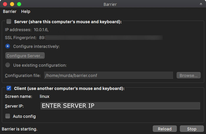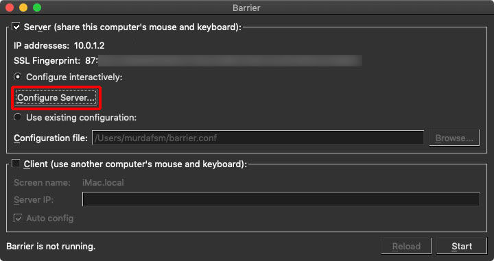 2. Run Barrier and decide if the computer is a server or a client ( read description if unsure ). In this case, this computer is a server.