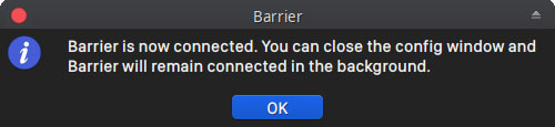 9. Now the Barrier client will connect to the server and you will be able to use your share your mouse/touchpad and keyboard between your computers.