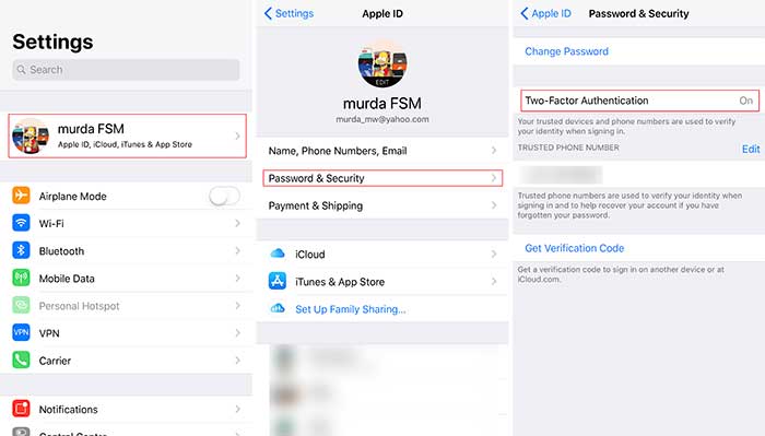 To enable 2FA go to Settings > [your name] > Password & Security > Turn On Two-Factor Authentication.