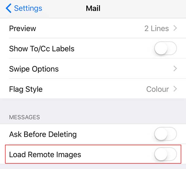 You can do the same on an iOS device. Go to Settings > Mail > Disable “Load Remote Images”
