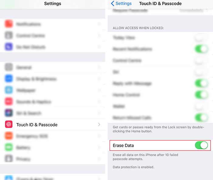 2. Enable “Erase Data”