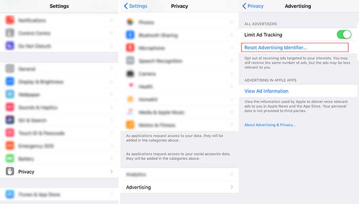 To do so, go to Settings > Privacy > Advertising > Reset Advertising Identifier