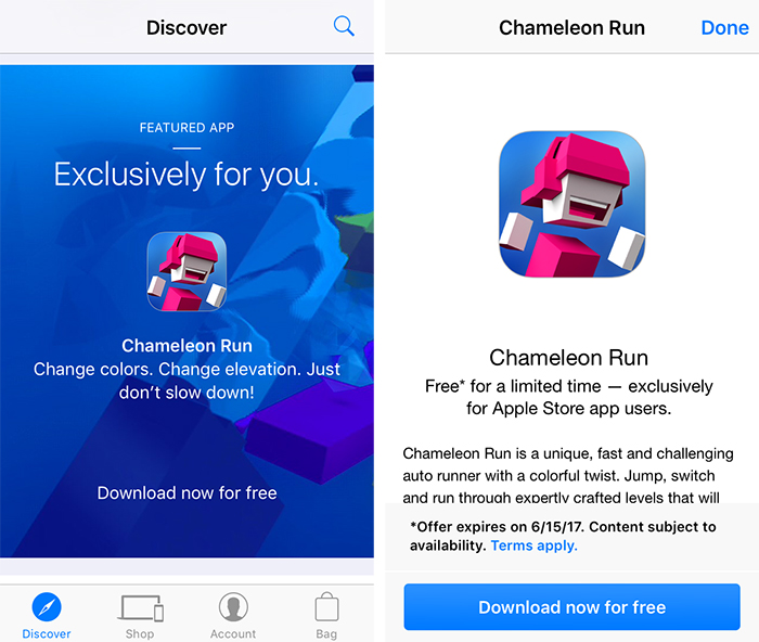 Just a quick heads-up: for a limited time Apple is offering “Chameleon Run” for free. Chameleon Run is a unique, fast and challenging autorunner with a colorful twist. Jump, switch and run through expertly crafted levels that will have you running back for more.