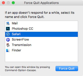 You can also force quit an app from the dock. Right click on on the app’s icon on your dock and then press options ( alt key ) to bring up the “Force Quit” menu.