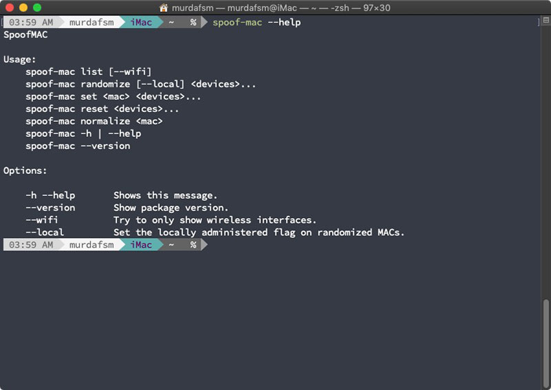 4. Once installed type spoof-mac --help to learn how to use it.
