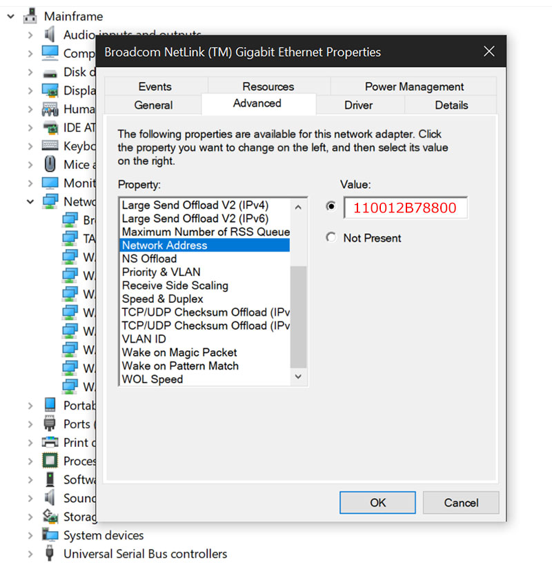 NOTE: If you don’t see the “Network Address” entry in the “Property” list, then your network driver does not support this feature.