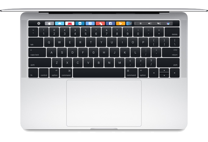 MacBook Pro removes the function and hardware keys at the top of the keyboard and replaces them with the new Touch Bar which will offer contextual options based on what you’re doing.