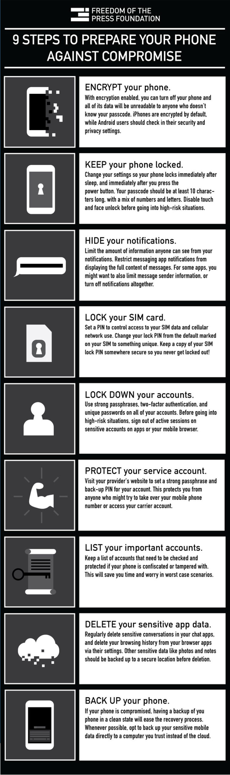 Get Signal for iOS, Android and Linux/macOS/Windows here. Also, recommended by the Freedom of the Press Foundation, here’s nine steps you should consider before attending a protest.