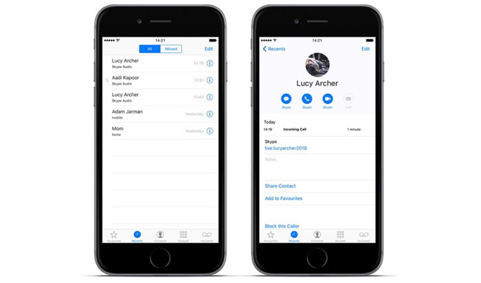 Additionally, because Skype takes advantage of CallKit within iOS 10, incoming Skype calls will now show up just like regular calls. This will make it easy to switch between or answer Skype and regular calls using the built-in iOS functionality you are already used to.
